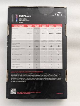 Listing is for one ARRIS SURFboard SBG6580 Modem Router with Power Supply as shown in photos in Good / Used Condition. -Additional listings here: https://www.ebay.com/str/esouthlane...