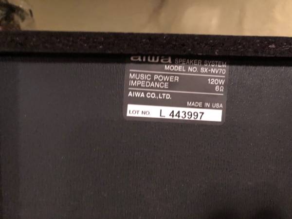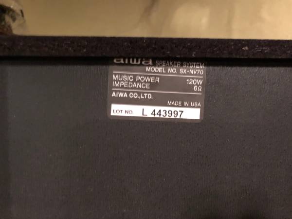 Selling a pair of Aiwa stereo radio speakers in excellent condition. I am the original owner. In a smoke free environment. Excellent original speakers work well I currently using them. I can send you a video.
