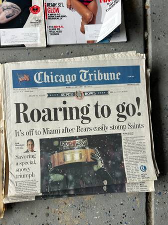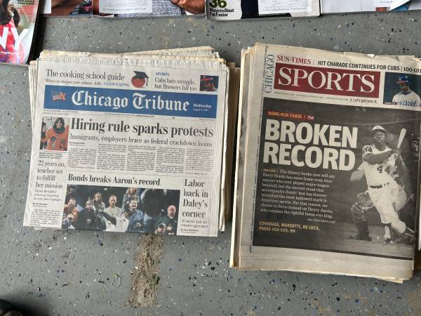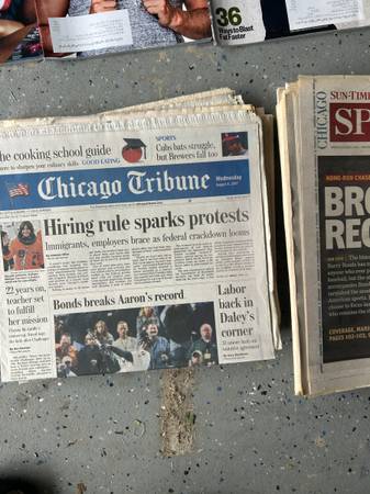 BEARS BLACKHAWKS & BARRY BONDS HR RECORD SUPERBOWL STANLEY CUP NEWPAPERS COMPLETE VARIOUS YEARS