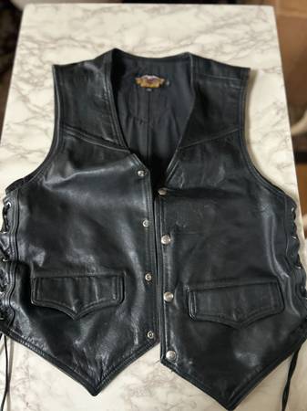 Harley Davidson Men’s Motorcycle Leather Vest Black Button Up Men's Large