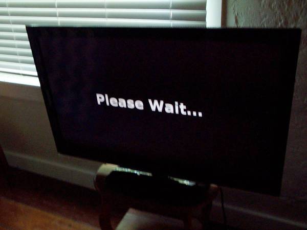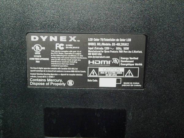 Dynex 40" flat screen LCD TV. Upon brief testing the TV powered on and reads "PLEASE WAIT" on screen and then nothing else happens. Standard size power cord (not included). For parts or repair. Cosmetically looks great. Screen is in perfect condition. TV measures 39" wide x 10 3/4" deep with base x 26 1/2" height. Easy pick up from North Aurora, IL. Please call or text show contact info