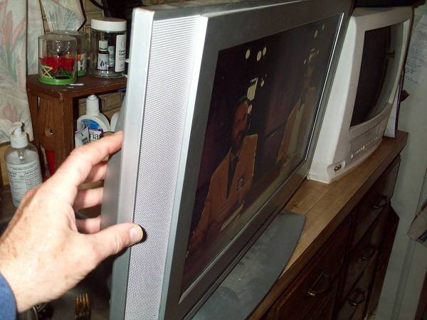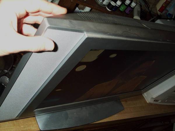 Scarce first generation 23" diagonal flat screen 16:9 ratio widescreen LCD TV by Zenith manufactured by LG in 2005. Model Z23LZ6R. Space age shiny silver plastic design. Screen pivots up and down for optimal viewing angle. TV still works great. Excellent condition. Composite, component, S-video and RGB input. This TV does not have a digital tuner. Remote not included though should work with a universal remote. Buttons are on TV. Connected to a converter box to demonstrate TV works. Stereo sound is awesome featuring DASP Digital Audio Surround Processor. TV is fairly heavy for its size. Includes power cord. Measures aprox 28 1/2" wide x 8 1/2" deep x 17 1/4" height. Pick up from Villa Park, Illinois a few blocks north of Roosevelt Road. Please call or text show contact info