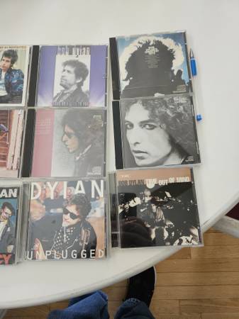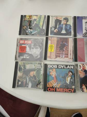 12 Bob Dylan CDs. All in excellent condition. CDs are Desire, Love and Theft, World Gone Wrong, Oh Mercy, Unplugged, Time out of Mind, Hard Rain, Street Legal, Blood on the Tracks, Good as I Been to...