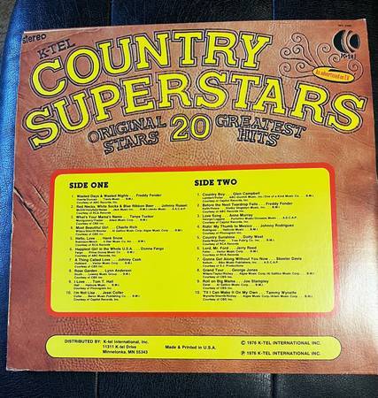 Country Superstars, 20 songs by 20 artists. The album is in good condition and plays well. Cash and pick up only. New Lenox, IL near Laraway and Schoolhouse.