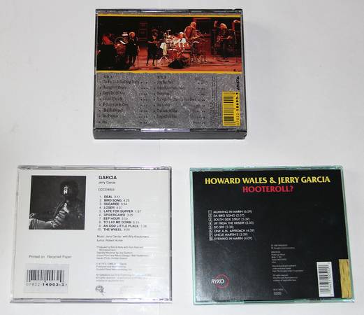 Three CDs by Jerry Garcia: "Garcia" (1972, 1988) "Hooteroll?" with Howard Wales (1987 Ryko) "Jerry Garcia Band" Double CD recorded live in 1990 with Jerry Garcia, John Kahn, Melvin Seals, David...