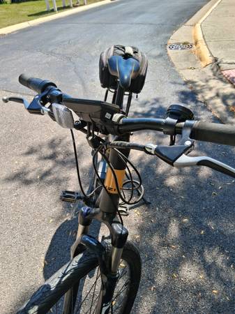 Speed to 28 mph. Commute routes in your neighborhood or trails in your local forest preserve. Aluminum alloy frame, Lithium battery is in excellent conditon, charges quickly with potential 750 recharges. Shimano derailleur, disk brakes, rear rack with double bag panier to carry groceries or camping equipment.