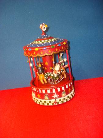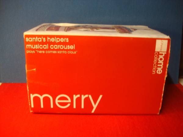 IT PLAYS HERE COMES SANTA CLAUS. IT MEASURES 5 " IN DIAMETER AND 10 " TALL. BAS 123 12 4
