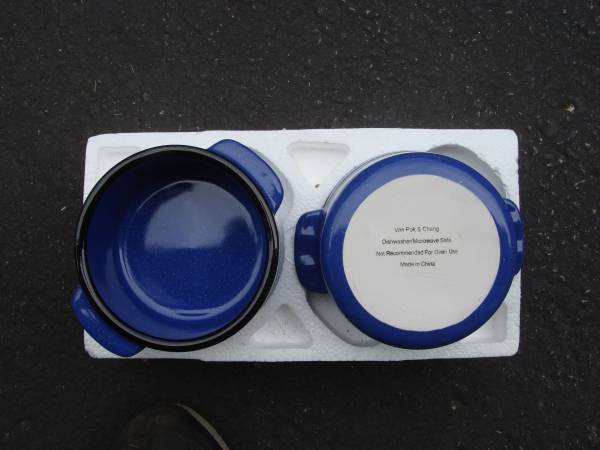THEY ARE NEW. 5 ' IN DIAMETER AND 2 1/2 " DEEP. BOTTOM SAYS NOT TO BE USED IN OVEN. 8 25 3