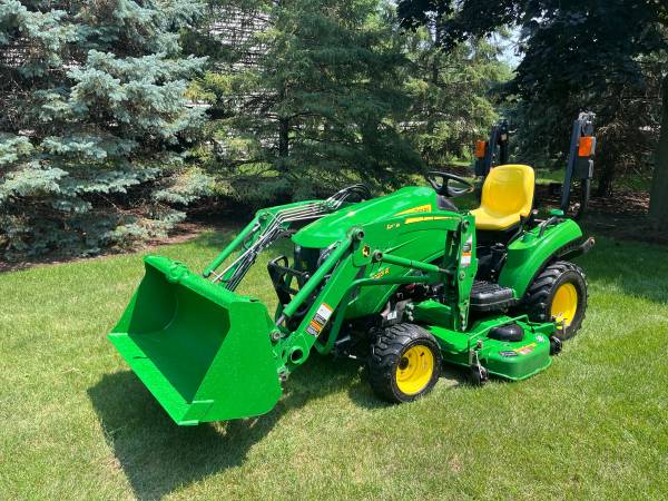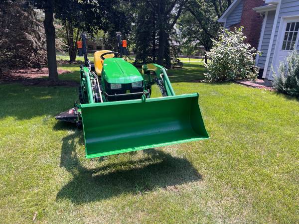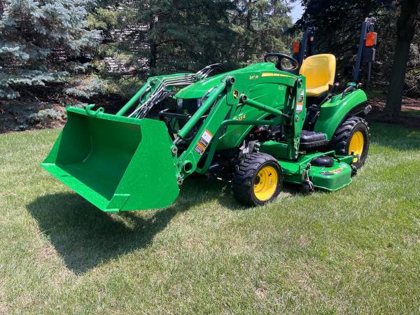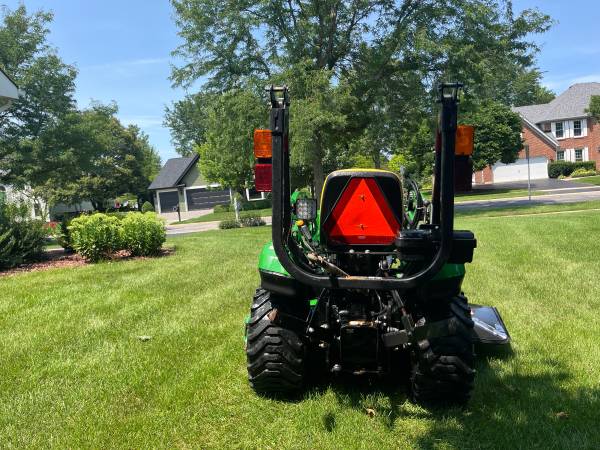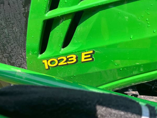 For Sale is a John Deere 1023E Compact Tractor. It features the 23.5 Horsepower Yanmar Diesel. It has the quick attach 120R loader as you can see from the pictures as well the larger 60 inch Auto Connect drive over lawn mower deck. It is a 4 wheel drive.