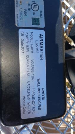 Light-duty industrial fan Wall-mounted 20" blade Airmater Fan model 78790 Non-oscillating New Text 630-247-sixsix60 Search patchesz for more listings