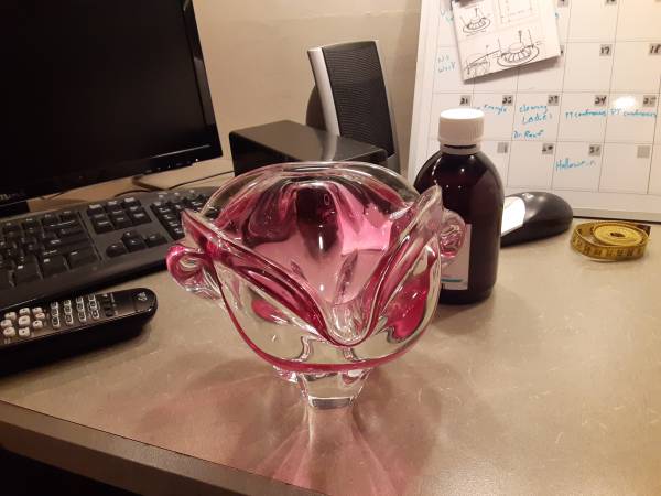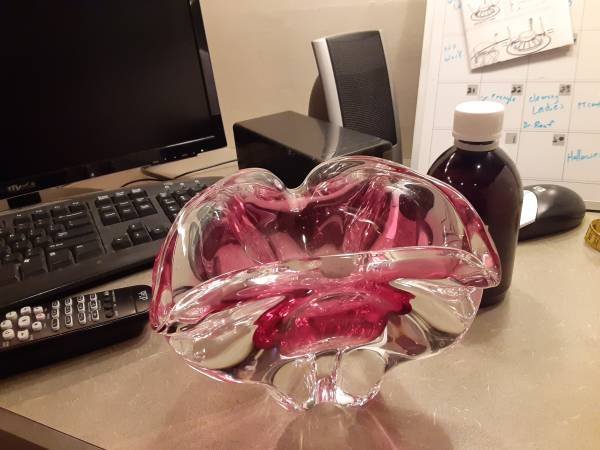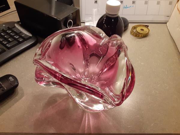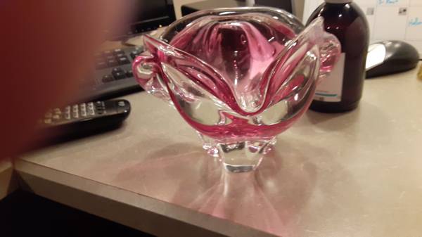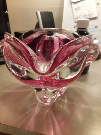 Bohemia candy dish Clear with cranberry color 7" wide x 7" long, 5.5" high Like new Text 630.247.sixsix60 To view all my listings, search- patchesz