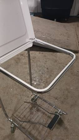 Laundry cart Needs a bag or use a trash bag. Model 21EP70 R & B Wire Products Inc, Hamper Frame, unassembled, 30 lb wt capacity, 20” Lg x 17 ¾”w, model# 21EP70