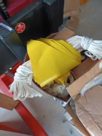 Warning line system 100 nylon coated stainless steel cable with flags and stanchion - 4 stanchions (Addition stanchions available) Model 493M89, Garlock 300229 Text 630.247.sixsix60 To view all my...