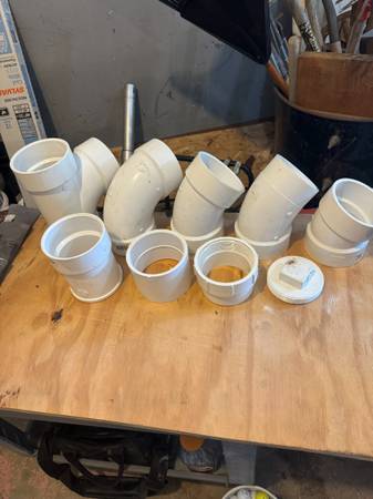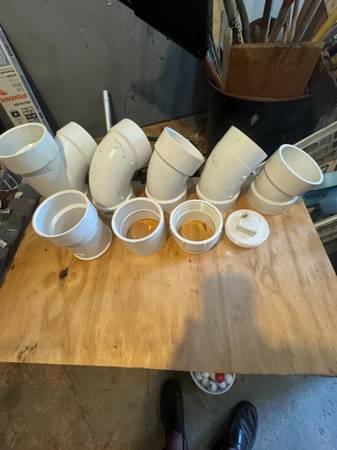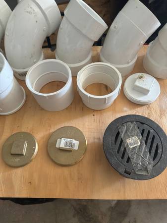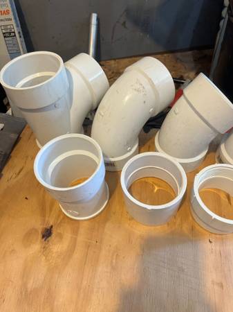 There are nine (9) 4" fittings in new, never used condition. All for $80.00 OBO Will not separate. Other brass and cast iron fittings shown in picture included.