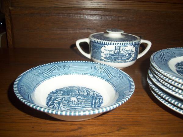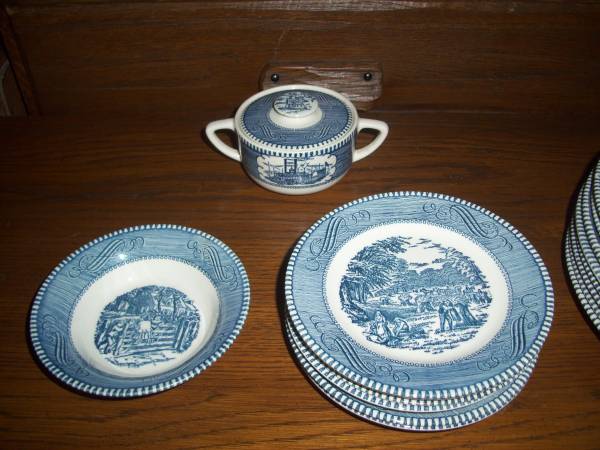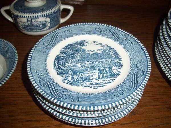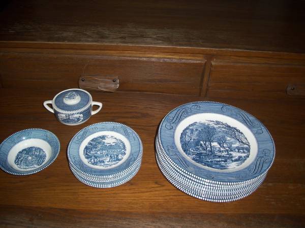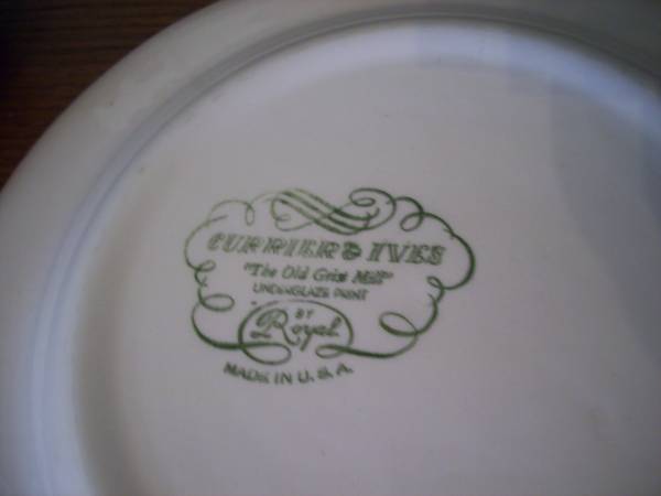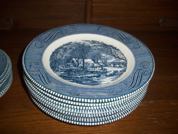 JUST IN TIME FOR THE HOLIDAYS! THIS IS A GROUP OF (16) VINTAGE CURRIER IVES FINE CHINA IN EXCELLENT CONDITION. THERE ARE (8) DINNER PLATES 10" OLD GRISS MILL SCENE, (6) DESSERT PLATES 6 1/2", (1)...