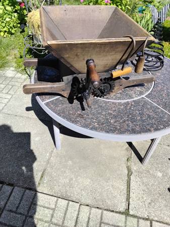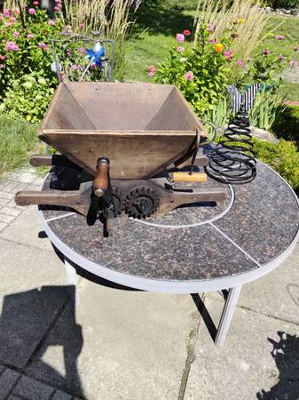 Vintage oak crusher with cast iron gears. It's clean, very solid and works great. $200