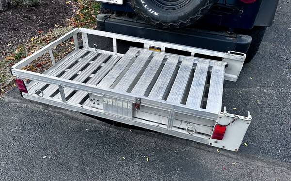 Trailer: aluminum build, ramp included, for 2‑inch hitch receiver attachment