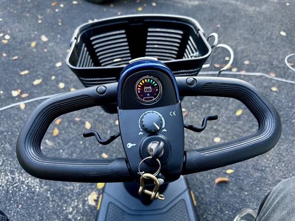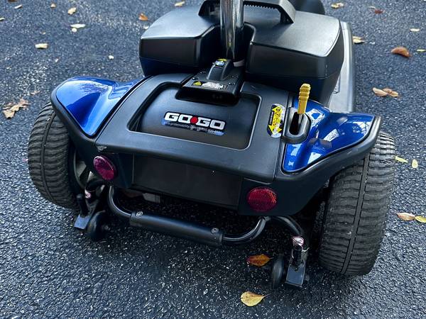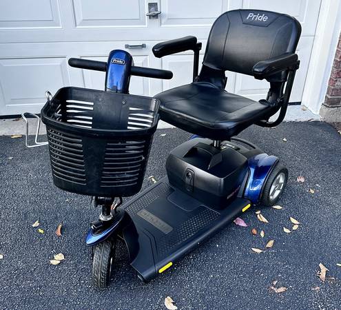 I’m selling a Pride Mobility Go Go Sport 3‑wheel mobility scooter, hardly used (only a few outings). It’s in great shape, low miles, and comes with the original wall charger, two sets of keys, extra red fenders, an oxygen‑tank holder (not pictured), cup holder, and two copies of the user manuals.