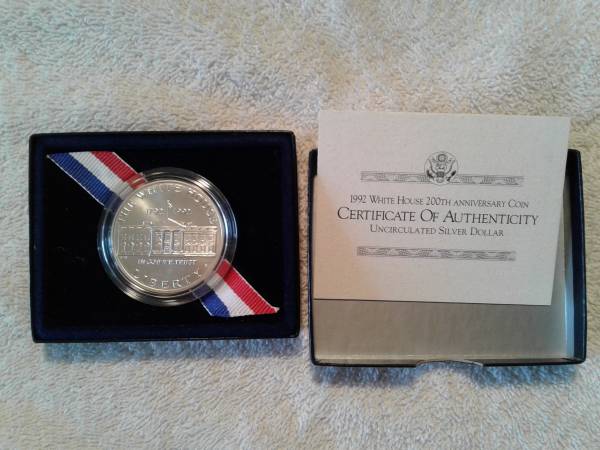 1992 D White house silver dollar with original box and COA 200th anniversary. Nice coin and box see pics for condition $45 OBO Cash only no trades ! Check my other US coins listed. Thanks for...