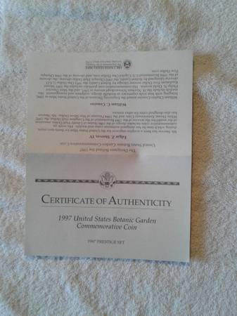 1997 S proof Botanic garden 6 coin prestige set. Has the $1 silver Botanic garden commemorative coin and 50, 25, 10, 5, 1 cent coins 3rd rarest set in the series. Very nice set no spots or toning common with prestige sets nice box and COA as came from mint. See pics for condition $65 OBO. Cash only no trades ! Check my other US coins listed. Thanks for looking.