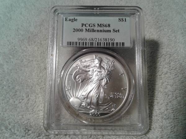 2000 W millennium set silver eagle PCGS MS68. Nice coin and slab low mintage only 75,000 see pics for condition $60 OBO. Cash only no trades ! Check my other US coins listed. Thanks for looking.