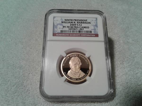 2 2009 William H. Harrison presidential $1 coins. 1 2009 S NGC PR70 and 1 P SMS MS67 high grade low pop. Nice coins and slabs no spots or toning 9th president. See pics for condition $45 OBO Cash only no trades ! Check my other coins listed. Thanks for looking.