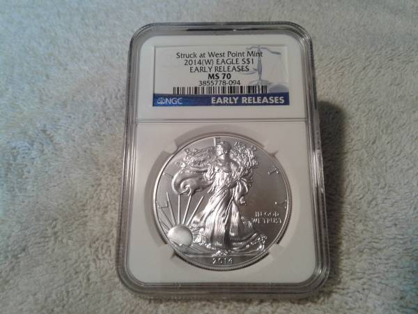 2014 (W) Silver eagle NGC MS70 early release no W mint mark. Nice coin and slab no spots or toning. See pics for condition $60 OBO Cash only no trades. Check my other coins listed. Thanks for...