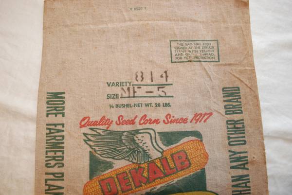 Old Dekalb burlap seed bag - 1/2" Bushel