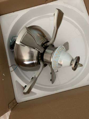 Used but in great shape and works fine, will have some dust. Just took down on 2/19/24 to put in a different model. Comes with everything you see pictured (with reversible blades) as well as some screws, a balancing kit (that may or may not have come with this fan in particular) and wire connectors. I believe it's a 52".
