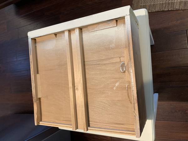 We painted it, and possibly changed the pull. Otherwise I don't know much about it, but see items like this selling for at least as much as I'm asking. As pictured, well kept overall though may need a bit of touch-up paint or cleaning. People might still place things on top of it while I wait for a buyer.