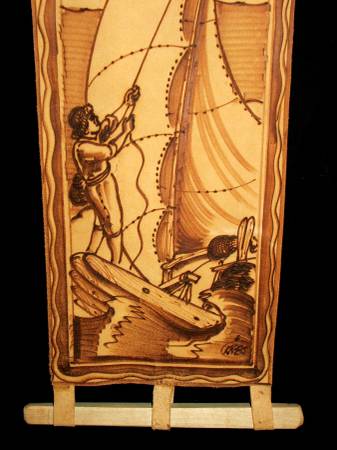 Nautical Pyrography Leather Sailboat Original Sailing Art
