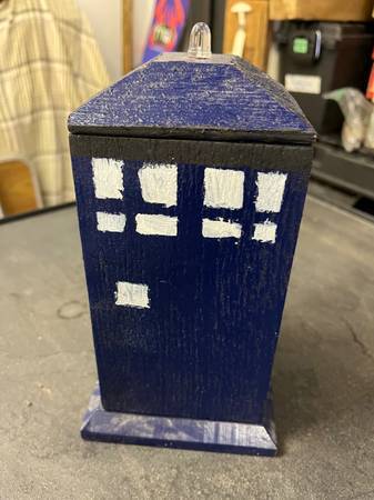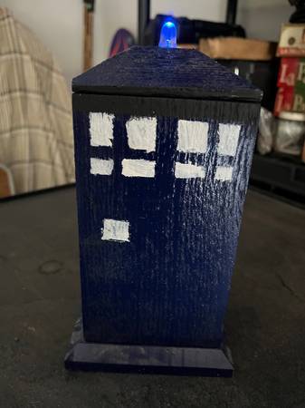 Tardis - Phone Booth with blue light on top lighted decoration. Made with a jumbo blue LED and switch to turn on and off. 2 available, $10 each Cash and pick up only. New Lenox, IL near Laraway and...
