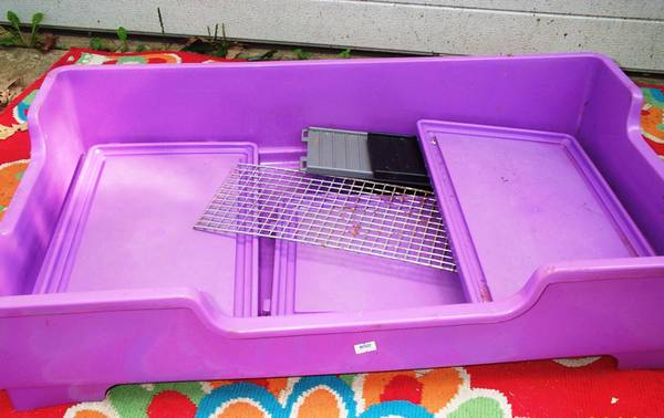 Super Pet brand ferret deluxe purple home play center. Sold at Scott's Pet Shop for $119.99. This is missing the cage top I think. I am not the original owner and not sure how it assembles. Please see pictures. Good for parts if you are missing your base. Measures aprox 32" length x 19 3/4" deep x 7" height. Pick up from North Aurora. Please call or text show contact info