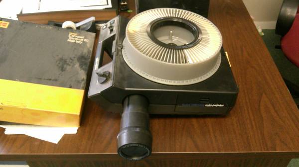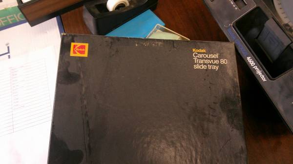 Slide projector with remote and 80 slot slide tray.