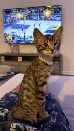 he is a very good kitten already litter box trained very sweet, unfortunately I have to relocate for college and my mom cannot afford to take care of the kitten so I need to find a new home for him
