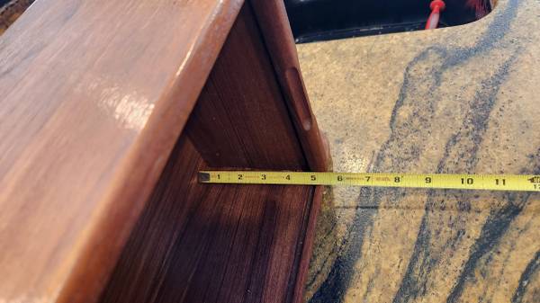 TEAKWOOD STORAGE BOX WITH SLIDING DOORS. SOLID CONSTRUCTION, NO CRACKS OR DAMAGE. INSIDE DIMENSIONS ARE 13" WIDE X 4.6" DEEP X 8.25" HIGH CASH ONLY