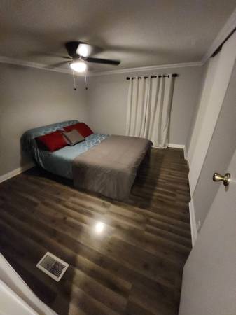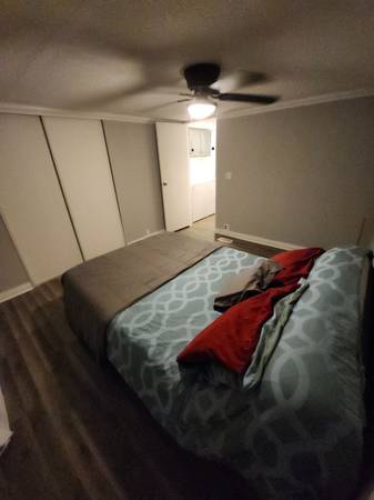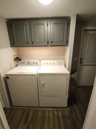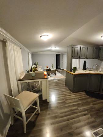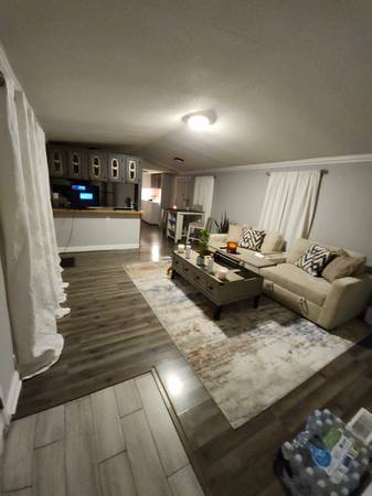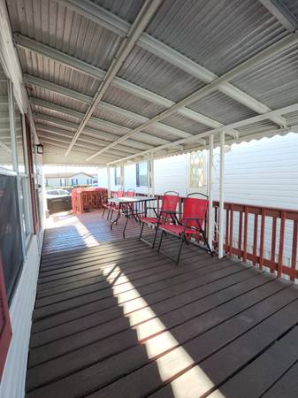 Recently renovated with new roof, floors, fence, and interior remodel. Features a spacious deck with awning, sizable front and back yards, and private parking for two vehicles. Monthly lot rent is $890, inclusive of water, sewer, and trash removal.
