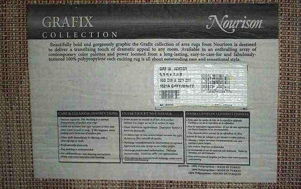 Nice area rug. Gray white color. Grafix Collection Nourison. Measures 5'3" x 7'3". Rolls up nicely for easy transport. Pick up from Villa Park. Please call or text show contact info