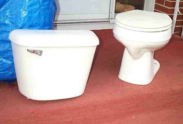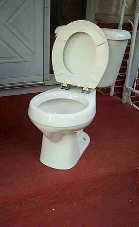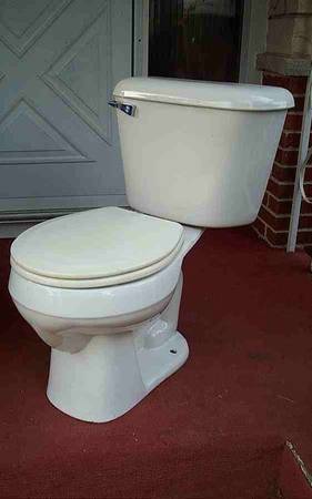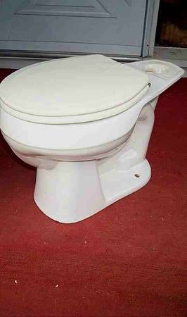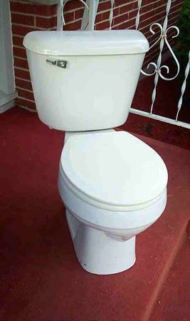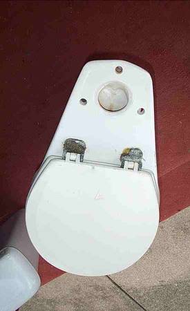 Very nice UPC white porcelain bathroom toilet. Complete with seat. Numbers on toilet are 160-A and P17 03. Measures aprox 19" length x 26" deep x 28" height. Hardware screws included as pictured. Tank removed as pictured for easier transport. Cash and carry. Pick up from Villa Park, Illinois. Please call or text show contact info
