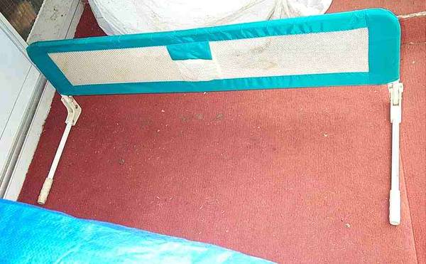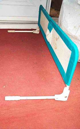 Safety bed soft rail with metal pole arms that slide under the mattress and help prevent child or elder accidental fall off. Hinged pole arms fold for easy storage. Arms lock in place. Gerry brand. Measures aprox 49" length x 17 1/4" deep x 16" height. Pick up from Villa Park Illinois. Please call or text show contact info