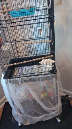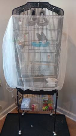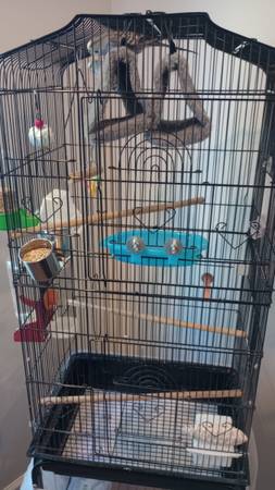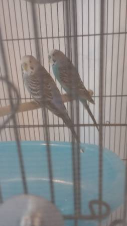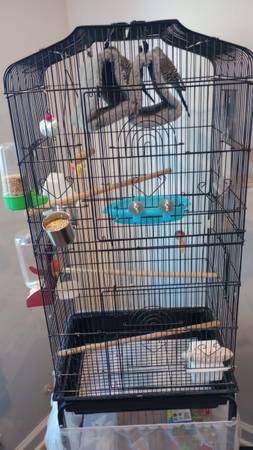 2 Parakeets with birdcage and all accessories shown in pics included.