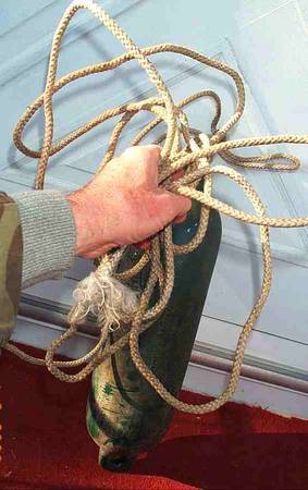 Industrial quality "Taylor Made" boat storm guard air fill fender float with a long rope. Boat guard fender float anchoring docking or water marker. Green plastic. Float measures aprox 6" round x 20" height. Pick up from Villa Park. Please call or text show contact info