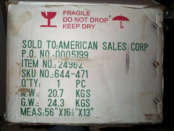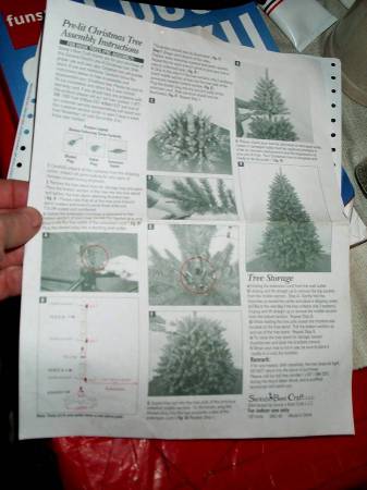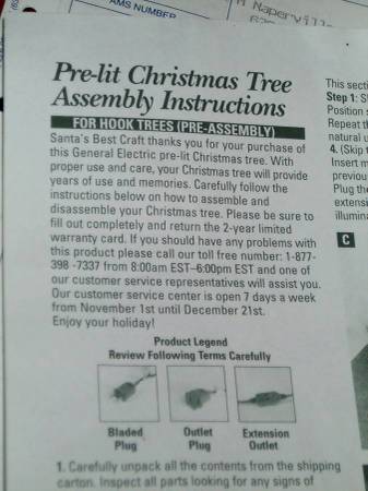 My sister bought this beautiful 9' tall slender Christmas tree with included stand a few years back and now she is downsizing. Expensive when purchased.This is the amazing Santa's Best Craft, LLC American Sales Corp GE Kenwood Spruce with 900 clear lights. Item 24962. Tree comes with the original box and a bonus tree bag. It is hard to fit the large tree back in to the original box so she bought a tree zipper bag to make it easier to pack tree back up. The tree comes in 3 sections since it so tall. All parts slide in to each other for easy set up. Comes with instructions on assembly. I think the middle section did not light up one year so my sister added additional lights. Non smoking home. The included original box measures 56" length x 16 1/4" deep x 13" height. These 9 foot trees are very expensive at the store. Pick up from Villa Park. Please call or text show contact info