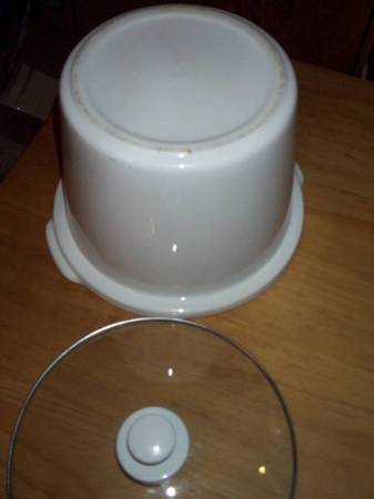 Heavy ceramic cooking pot and glass lid. I believe this is an insert for a large crock pot machine. Not sure. Only this big pot and lid are included. Great for serving soup, scalped potatoes, etc. Measures aprox 11 1/2" round at widest point. Bottom 8" round. Easy pick up from Villa Park, IL a few blocks north of Roosevelt Road. Please call or text show contact info