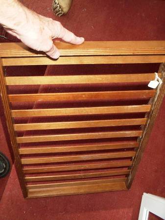 Unique vintage wood display rack. Hang earings, jewelry, necklace, Christmas ornaments other small valuable items so people can easily see and buy. Great for stores, home, flea market sales, etc. Measures aprox 15" length x 1 1/2" deep x 23" height. Pick up from Villa Park. Please call or text show contact info
