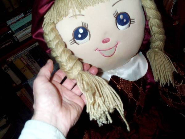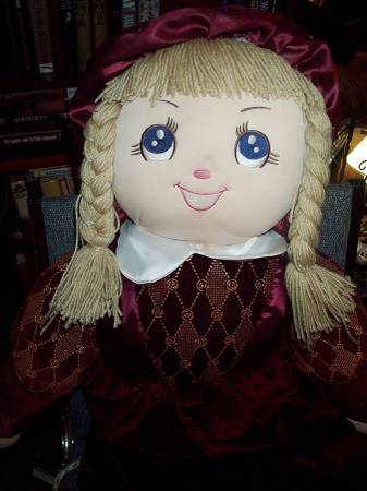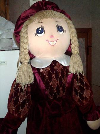 Very large and rare girl plush doll. Blonde pigtails, blue eyes and beautiful outfit. Manufactured by Goffa Int'l corp. Like new condition. Doll measures aprox 19" wide x 5" thick x 48" tall. Exactly as pictured. Easy pick up from Villa Park, Illinois a few blocks north of Roosevelt Road. Please call or text show contact info