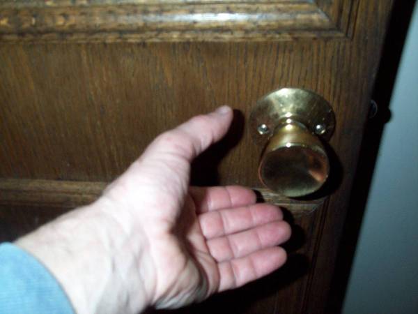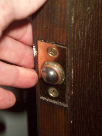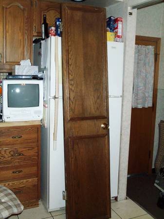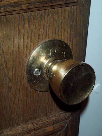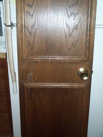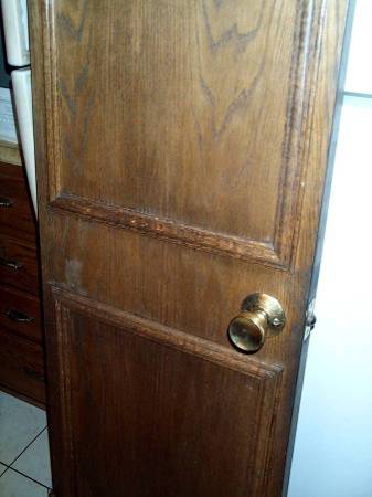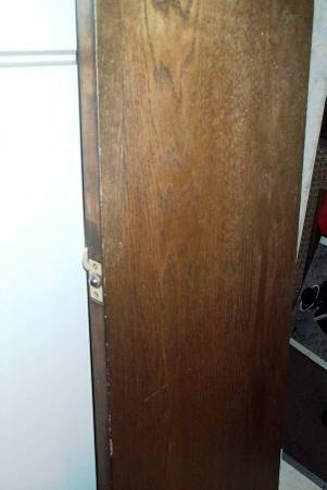 Tall and slender cupboard or closet door. Complete with original gold doorknob and hinges. Exactly as pictured. Door measures 17 14/16" wide x 1 3/8 thick x 79 1/4" height. Easy pick up from Villa Park, Illinois a few blocks north of Roosevelt Road. Please call or text show contact info