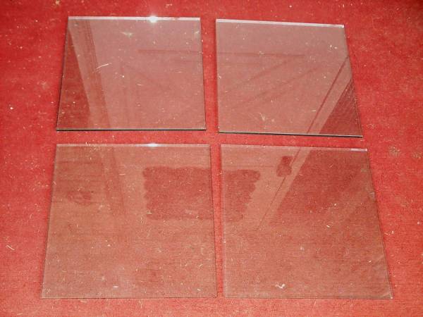 4 thick heavy square glass panels. These came from the top of a vintage cocktail table. Repurpose for your table or other creative project. Each glass square measures aprox 14" length x 14" deep x 11/16" thick. Pick up from Villa Park. Please call or text show contact info