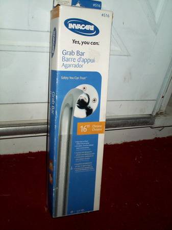 16" wall mount Grab Bar by Invacare. Model 516-3. New in box. Great for seniors and rehab patients who have a hard time getting up or need extra help to hold on. Non slip surface offers secure grip. Durable chrome plated steel construction. New in box with hardware screws. Ready to mount. Pick up from Villa Park. Please call or text show contact info