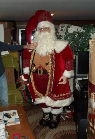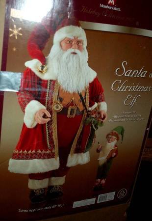 Collectable and stunning GIGANTIC 80" tall Member's Mark Holiday Collection 2007 Santa Claus. Santa carries a bag of toys and a time piece. Perfect for business, large venues, restaurants, Moose Lodge, etc. Truly a beautiful addition to any 5 star venue. Attracts a lot of attention. Realistic face. Big hat. Sand weighted feet so Santa won't tip over. Elf not included that is shown on the box. Santa's head removes and also fits in the box for easier storage. You will need a a hatchback, van or truck to transport Santa. Excellent condition. Heavy item. Original box included. I can help you carry to your vehicle. Pick up a few blocks north of Roosevelt Road. Please call or text show contact info